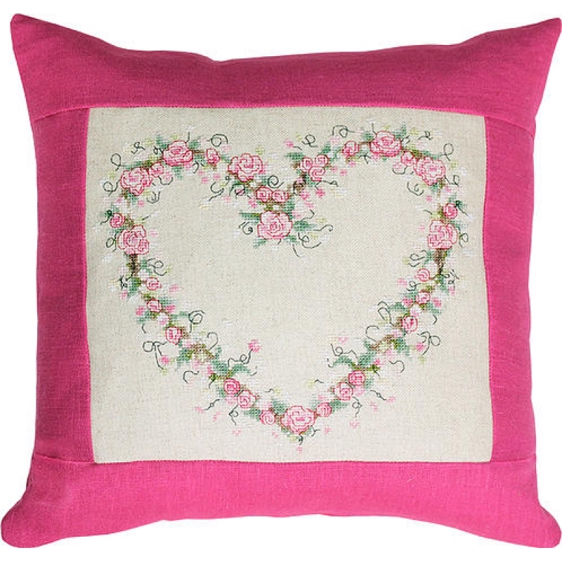 В состав набора входит: цветная фотография готовой подушки, мулине Anchor хлопок, схема, ткань для вышивания производства немецкой фирмы Zweigart, ткань для оборота, игла, молния, инструкция.