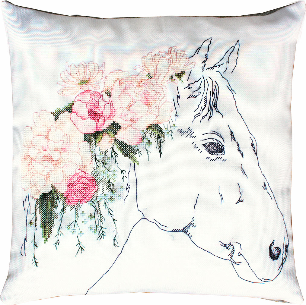 PB109 Лошадь в цветах. Luca-S. Набор для вышивания нитками. Подушка.