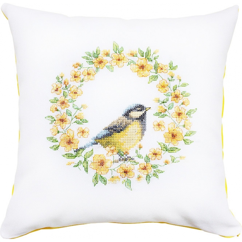 В состав набора входит: цветная фотография готовой подушки, мулине Anchor хлопок, схема, ткань для вышивания производства немецкой фирмы Zweigart, ткань для оборота, игла, молния, инструкция.