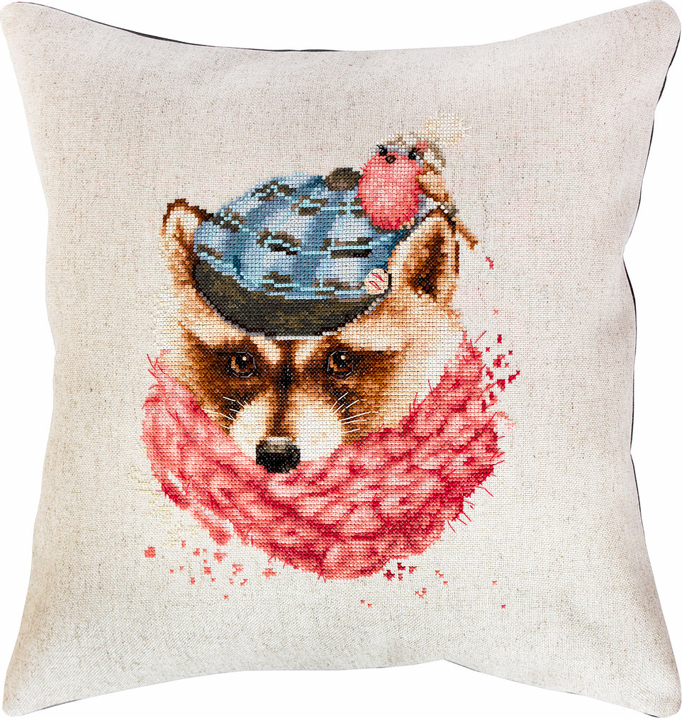 В состав набора входит: цветная фотография готовой подушки, мулине Anchor хлопок, схема, ткань для вышивания производства немецкой фирмы Zweigart, ткань для оборота, игла, молния, инструкция.