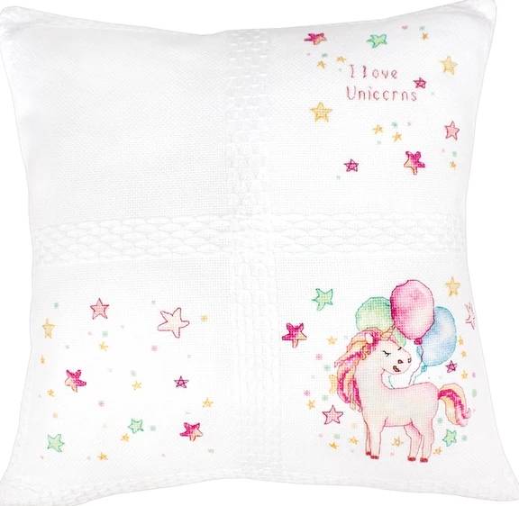 В состав набора входит: цветная фотография готовой подушки, мулине Anchor хлопок, схема, ткань для вышивания производства немецкой фирмы Zweigart, ткань для оборота, игла, молния, инструкция.