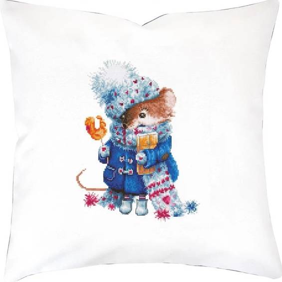 В состав набора входит: цветная фотография готовой подушки, мулине Anchor хлопок, схема, ткань для вышивания производства немецкой фирмы Zweigart, ткань для оборота, игла, молния, инструкция.