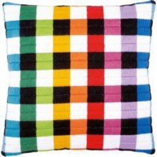 PN-0150843 Подушка. Разноцветные квадраты. Набор для полной зашивки гладью на страмине. ТМ Vervaco (Бельгия)