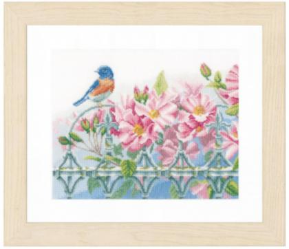 PN-0156946 Королек и розовые цветы. LanArte. Набор для полной зашивки крестом