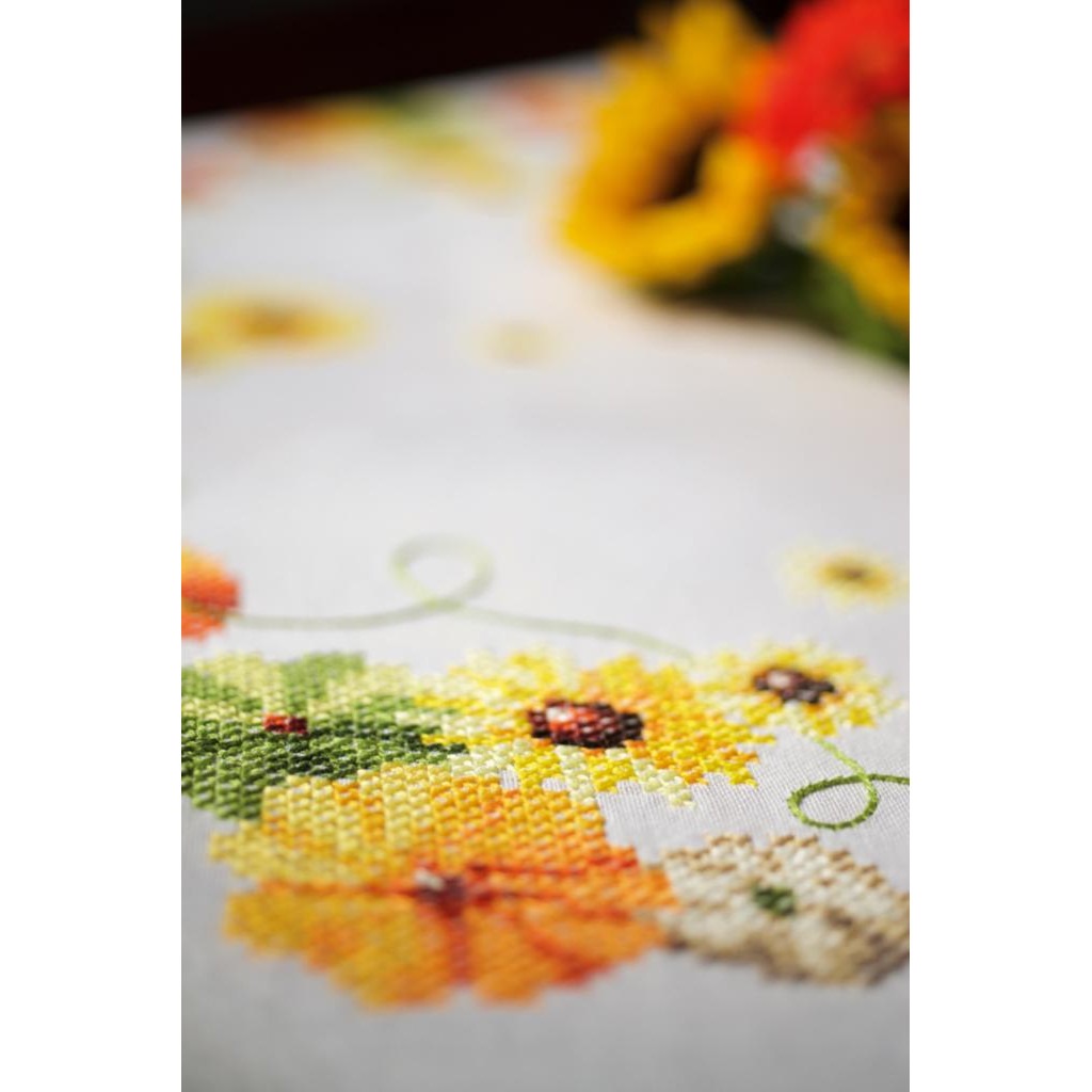Разом з PN-0157711 Соняшники. Скатертина. Vervaco. Набір для вишивки хрестом ви зможете вишити красиву і яскраву скатертину, яка стане прикрасою вашого стіл, як на свято, так і в звичайний буденний день.