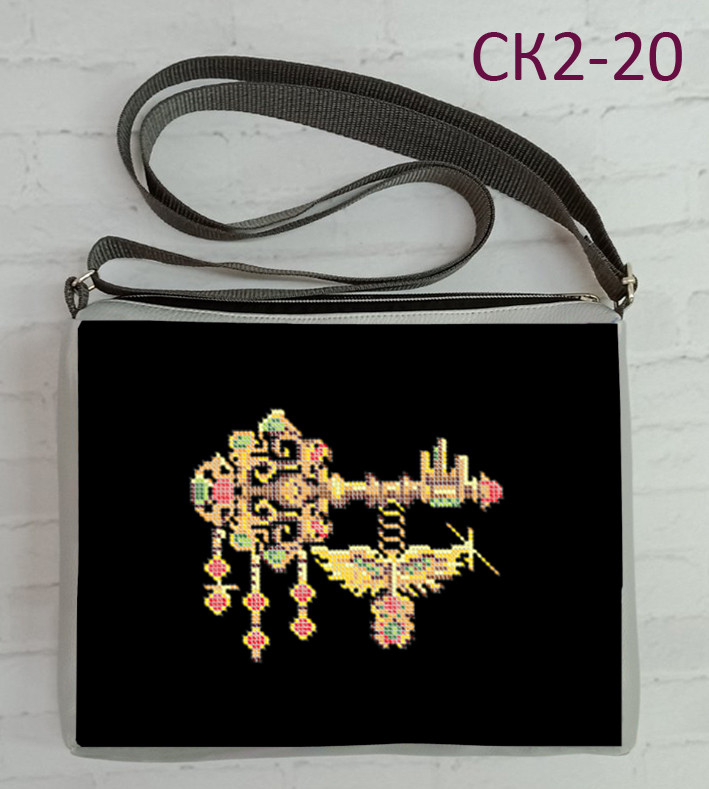 Пошитая сумочка для вышивки бисером. ЭКО-КОЖА!!! Характеристика изделия: -якісний пошиття вироби; — є підкладка всередині; -сумка пошита на одне відділення; — є внутрішня кишенька; -є зовнішній кишеню — тканина — габардин (підклеєна флізеліном) — вишивка — матеріал виробу -ЕКО-ШКІРА — макет малюнка з бісерної сіткою знаходитися на одній стороні сумочки. (т. е вишивається тільки одна сторона виробу) -розмір виробу: Ширина — 25 см Висота — 22 см Товщина виробу — 4см Повна довжина ручки — 140см -Ручка виконана з ремінною стрічки (дуже міцна і зручна) — на ручці встановлений обмежувач потрібної Вам довжини