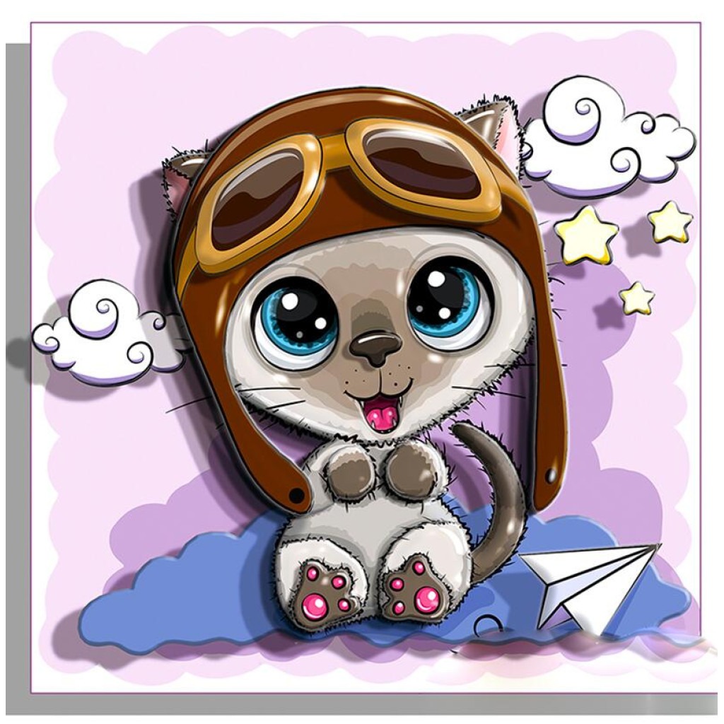 РТ150208 Кот-пілот. 12.5х12.5 см. Папертоль. Набір картини з паперу (РТ150208)