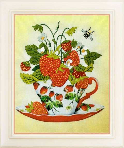 R-021 Клубничный чай. ТМ Olanta. Набор для частичной вышивки нитками.