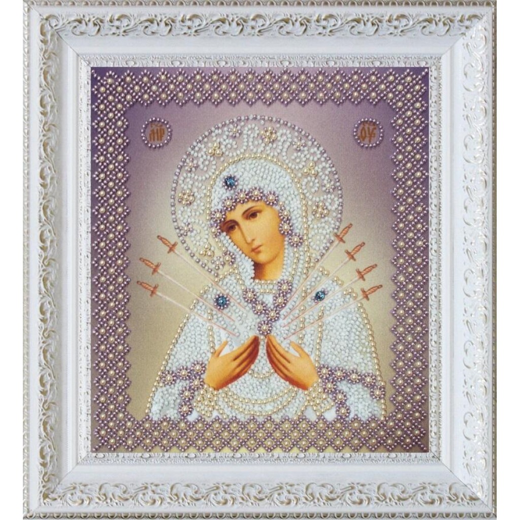 На іконі зображена Божа Матір, яку пронизують сім мечів. Також цю ікону називають «Пом’якшення злих сердець» або «Симеоново проречение». Стріли або мечі на іконі символізують горе і біль, які відчувала Богородиця під час розп’яття Ісуса