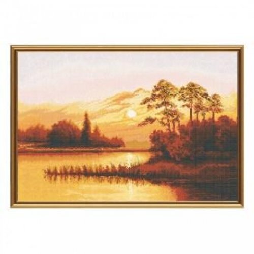 РЕ3248 Захід сонця над озером. 28х42 см. Нова Слобода. Набір для вишивки хрестиком на Aida 16