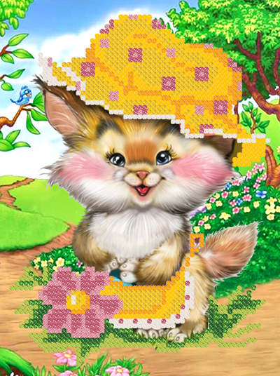 РКП-5-023 Кошечка в чепчике ТМ Маричка Схема для частичной вышивки бисером