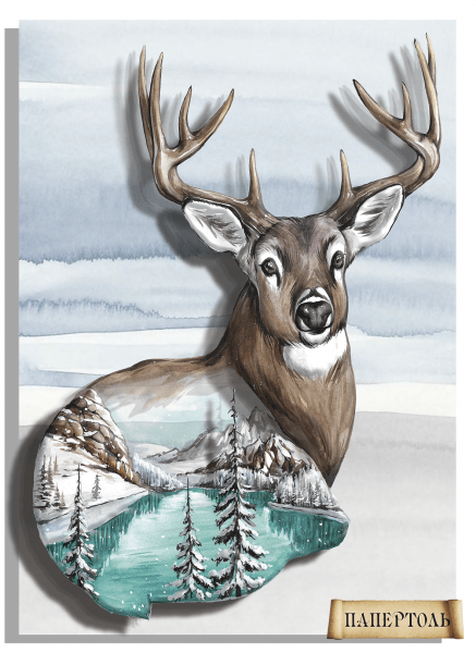 В набор Папертоль входят карты на глянцевой бумаге, обложка и инструкция. На картах нанесены изображения всех, необходимых для создания объемной картины, слоев.