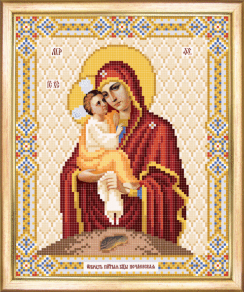 Предлагаем Вас создать удивительный оберег с помощью схемы для вышивки бисером «Икона Божьей Матери Почаевская» от «Чарівна Мить®».
