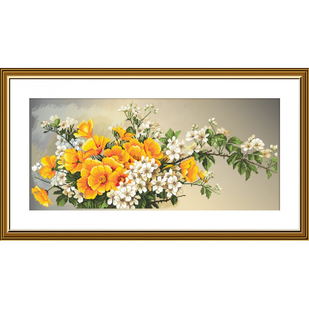 Набор для частичной вышивки крестом на ткани с нанесенным фоновым рисунком