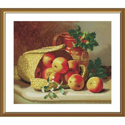 Набор для вышивания нитками на канве с фоновым изображением «Сладкие яблочки» ТМ Новая Слобода. Ткань-основа картины – канва Aida 16 размера с нанесенным рисунком. В набор входят все необходимые для вышивания нитками материалы: канва, нитки мулине Avrora 120, игла для вышивки нитками, понятная цвето-символьная схема, подробная инструкция. Высокое качество печати на ткани передает многообразие тонов фона и мелкие детали изображения. Для вышивки этой картины используется 33 цвета ниток. Нитки Avrora польского производителя не крутятся, не путаются, не линяют, не оставляют просветов в рисунке. Вышивать ими удобно и приятно. Зашивка частичная, вышиваются только отдельные фрагменты рисунка. Шитьё выполняется швом «крест». В инструкции, сопровождающей набор, подробно описана техника вышивания и прилагается схема вышивки счётным крестом. Вышивается аппетитный натюрморт с яблоками, кувшин, корзинка. Набор для вышивки крестиком на фоновой канве доставит приятные часы за любимым рукоделием. Вышитый натюрморт украсит гостиную и станет заметным объектом в убранстве дома. Вышитые яблоки символизируют достаток, изобилие, знание.