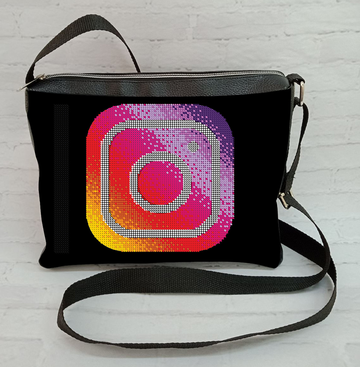 Пошита сумочка для вишивки бісером. ЕКО-ШКІРА!!! Характеристика виробу: -якісний пошиття вироби; — є підкладка всередині; -сумка пошита на одне відділення; — є внутрішня кишенька; -є зовнішній кишеню — тканина — габардин (підклеєна флізеліном) — вишивка — матеріал виробу -ЕКО-ШКІРА — макет малюнка з бісерної сіткою знаходитися на одній стороні сумочки. (т. е вишивається тільки одна сторона виробу) -розмір виробу: Ширина — 25 см Висота — 22 см Товщина виробу — 4см Повна довжина ручки — 140см -Ручка виконана з ремінною стрічки (дуже міцна і зручна) — на ручці встановлений обмежувач потрібної Вам довжини