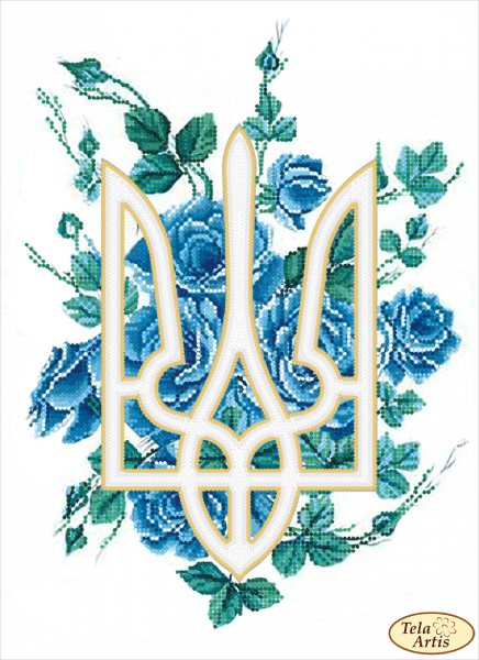 Схема для вишивки бісером «ТА-508 Герб у квітах. Тела Артис» нанесана на габардин. Цей матеріал відмінно підходить в якості основи для вишивки бісером, так як без труднощів проколюється голкою і не вимагає застосування п’ялець.