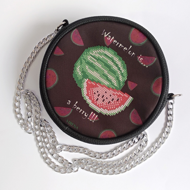 Сумка для вишивки бісером кругла, Ручка виконана у вигляді металевого цепу,