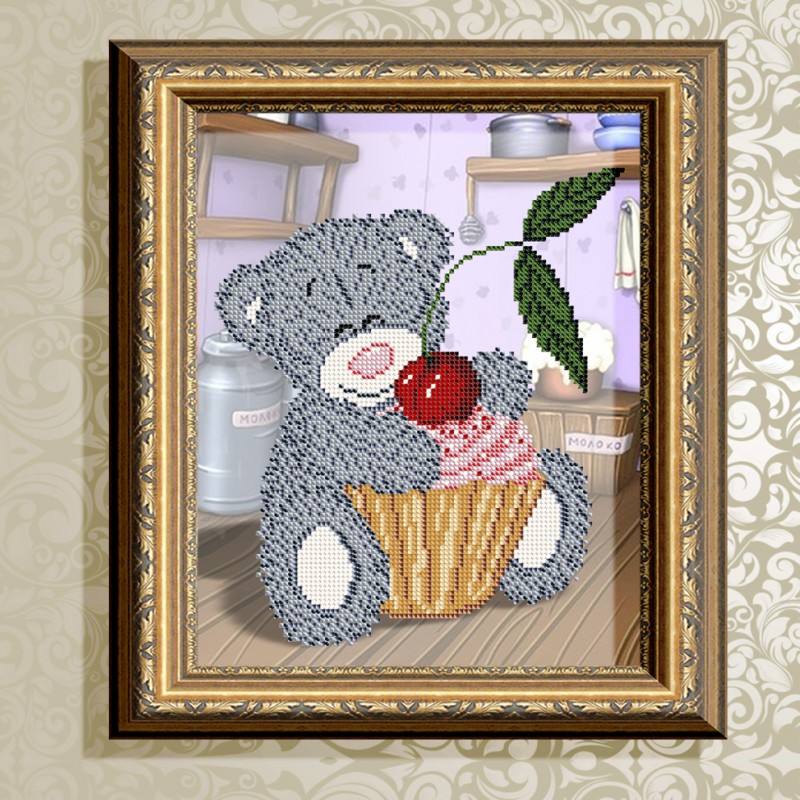 VKA4412 Мишка с кексом. ТМ ArtSolo. Схема для частичной вышивки бисером