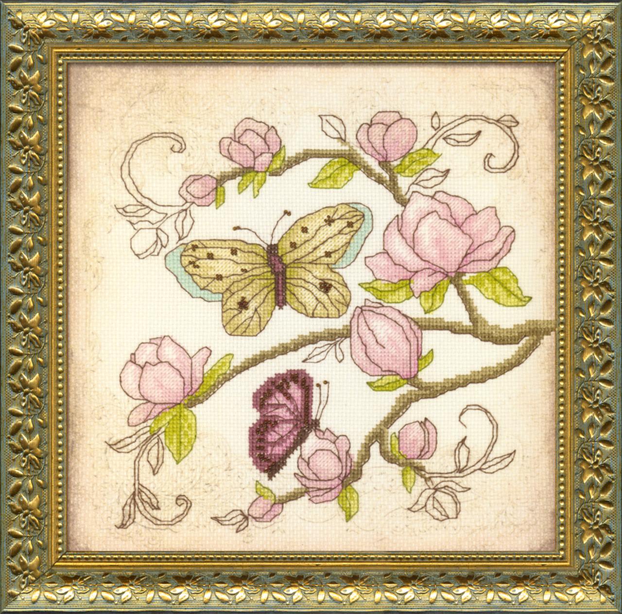 В набор входит: инструкция, цветная символьная схема, канва Aida 16, хлопковое мулине Bestex, бисер Preciosa Ornela (Чехия) и иглы