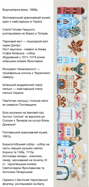 X-304 Житомир-Київ-Полтава-Чернігів 5,5х35см Тела Артіс. Набір для вишивки хрестиком на рівномірці Zweigart Cashel 28ct